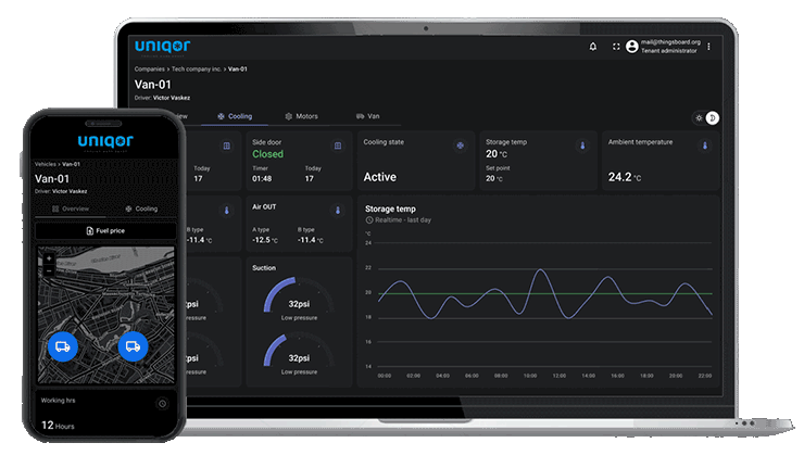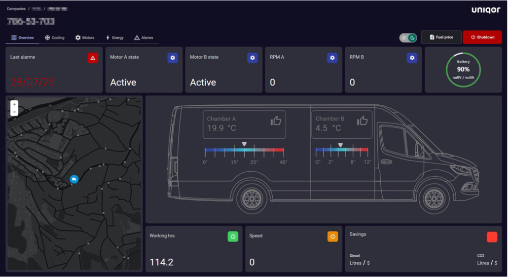 Uniqontrol, Uniqor’s cloud-based management platform, connects seamlessly with every vehicle’s Smart Cooling Computer (SCC), giving fleet managers full visibility and control over refrigeration performance - anytime, anywhere.